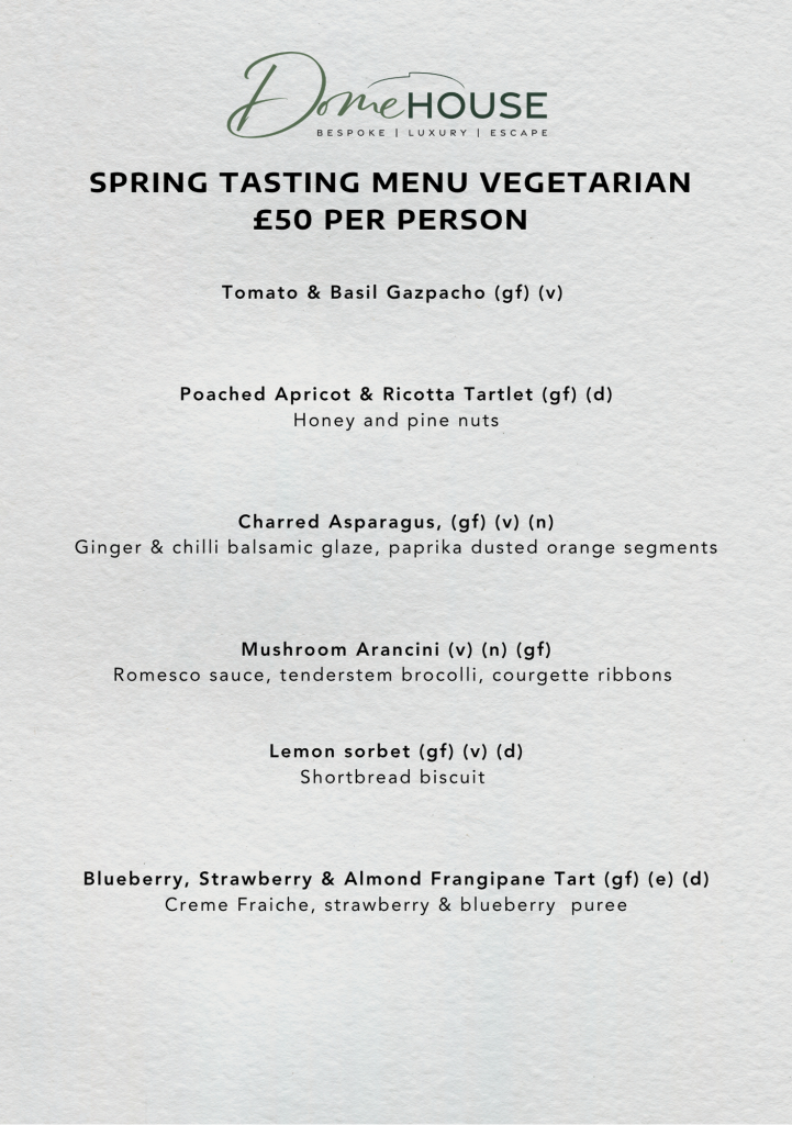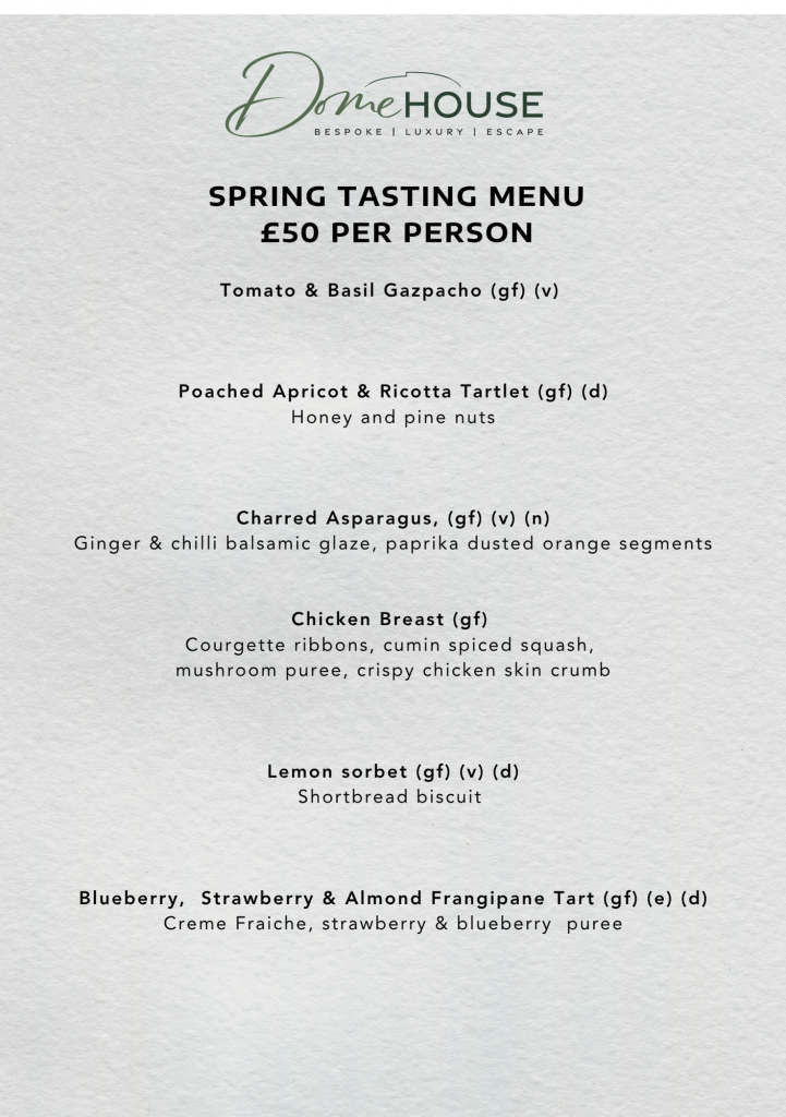 | Celebrate Valentine’s Day at Dome House. Arrive from 2pm to a welcome glass of bubbles, then take time to unwind and enjoy all the facilities Dome House has to offer. As evening falls, sit down to a beautifully crafted six-course tasting menu. Wake the next morning feeling relaxed and refreshed, and enjoy a freshly cooked breakfast before departure. |